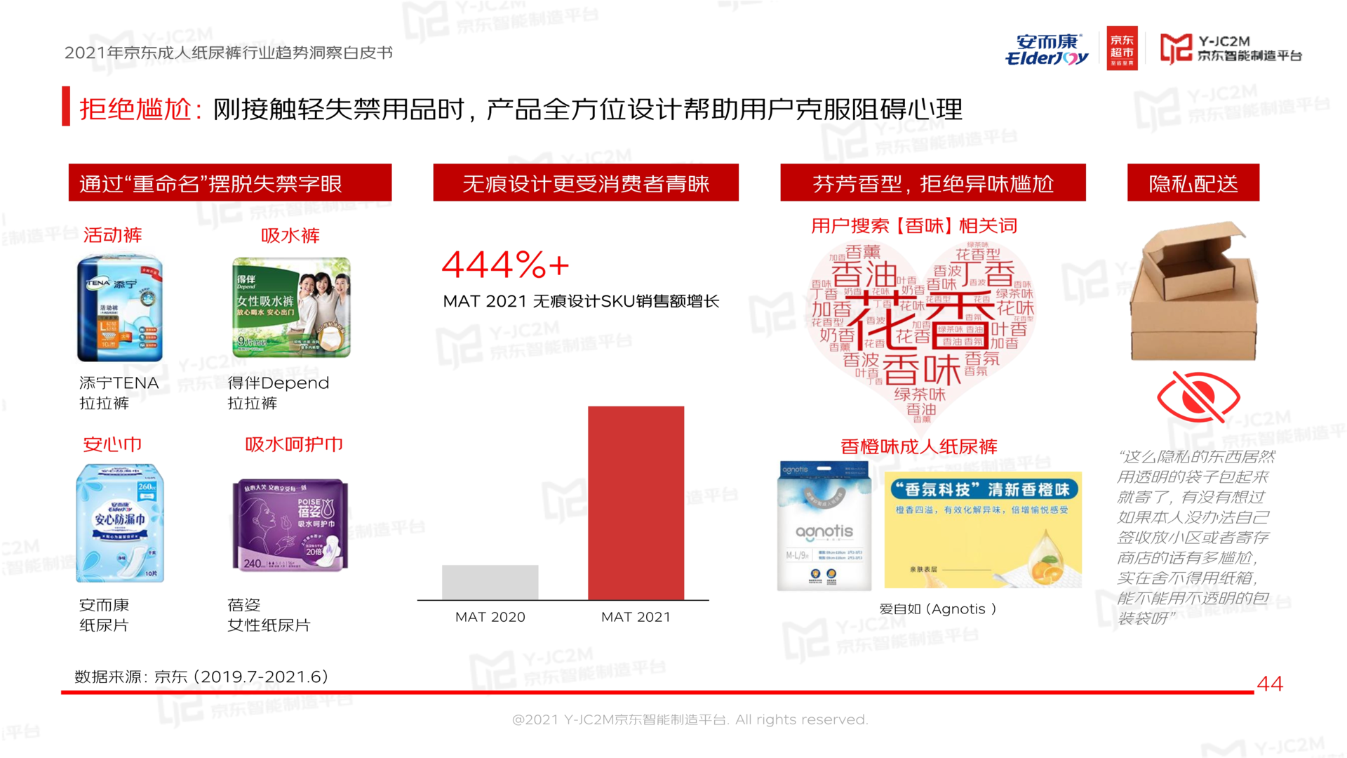 优化产品设计,以规避敏感字眼、采用无痕设计、芳香除异味等手段,帮助用户克服阻碍心理。